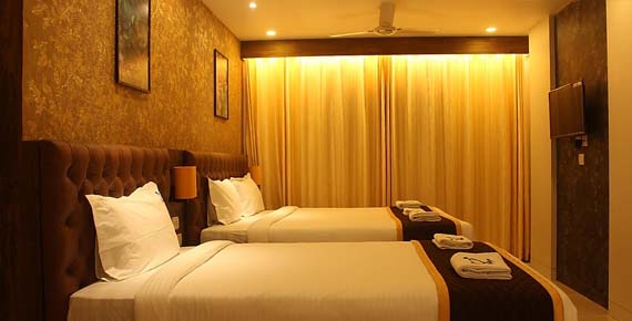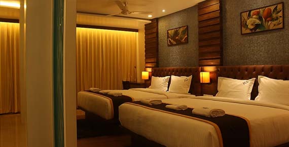 A Luxury triple bed room with all amenities is a spacious and well-equipped sleeping area designed to accommodate up to three guests. It typically features three separate beds, which may be arranged as twin beds or a combination of twin and double beds. The room is equipped with all necessary amenities to ensure a comfortable and convenient stay, including air conditioning, a private bathroom with shower and toilet, a dressing table, and ample storage space. Other amenities may include a TV, Wi-Fi, a minibar, and a safe for valuables. The decor is typically modern and comfortable, with soft lighting, comfortable bedding, and functional furniture to create a relaxing and inviting environment.